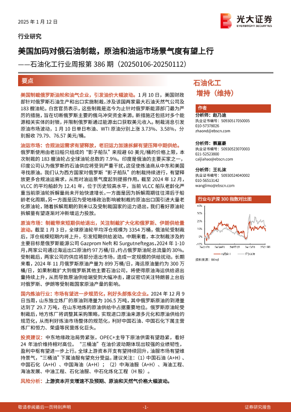 【光大证券】【20250112】美国加码对俄石油制裁,原油和油运市场景气度有望上行-14页