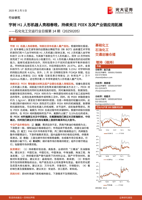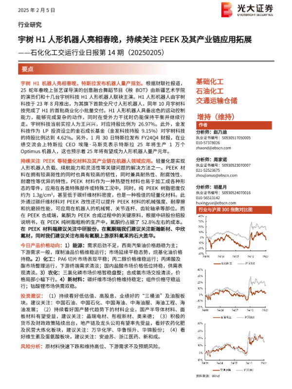 【光大证券】【20250205】20250205-光大证券-石化化工交运行业日报第14期:宇树H1人形机器人亮相春晚,持续关注PEEK及其产业链应用拓展-11页