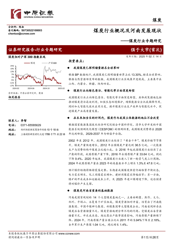 【中原证券】【20250214】20250214-中原证券-煤炭行业专题研究:煤炭行业概况及河南发展现状-26页