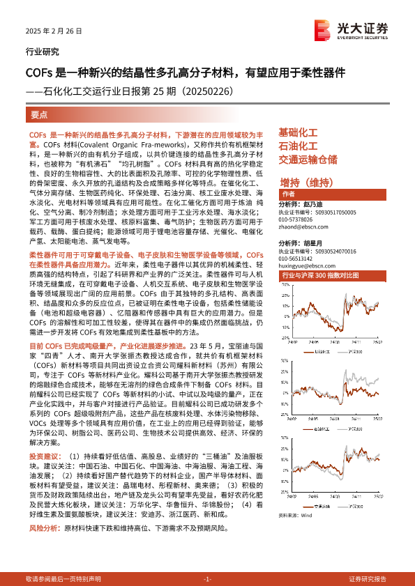 【光大证券】【20250226】20250226-光大证券-石化化工交运行业日报第25期:COFs是一种新兴的结晶性多孔高分子材料,有望应用于柔性器件-11页