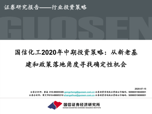 【国信证券】【20200715】国信化工2020年中期投资策略:从新老基建和政策落地角度寻找确定性机会-44页