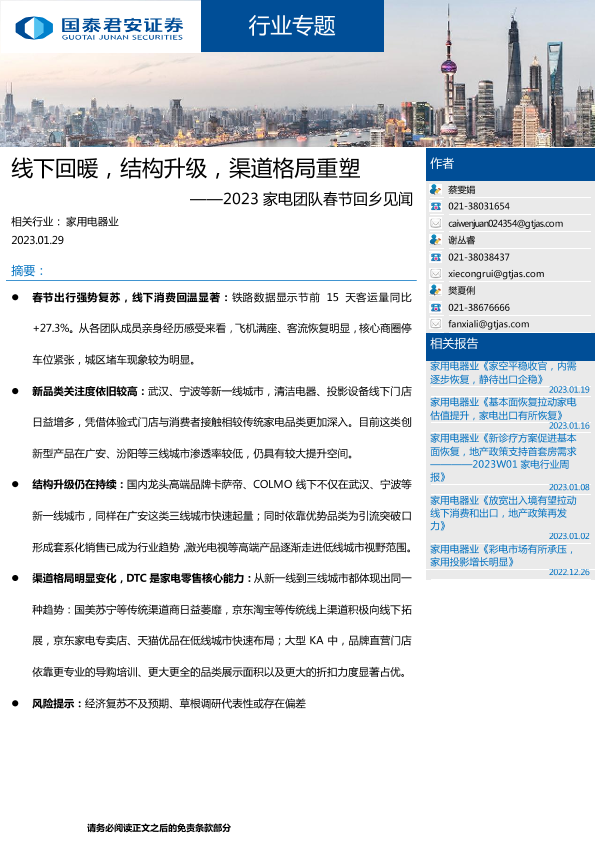 【国泰君安证券】【20230129】2023家电团队春节回乡见闻:线下回暖,结构升级,渠道格局重塑-30页