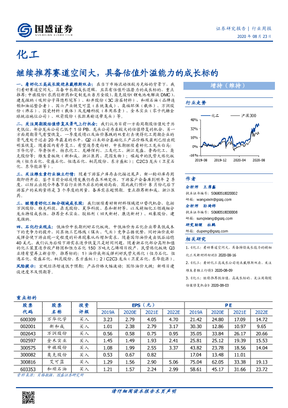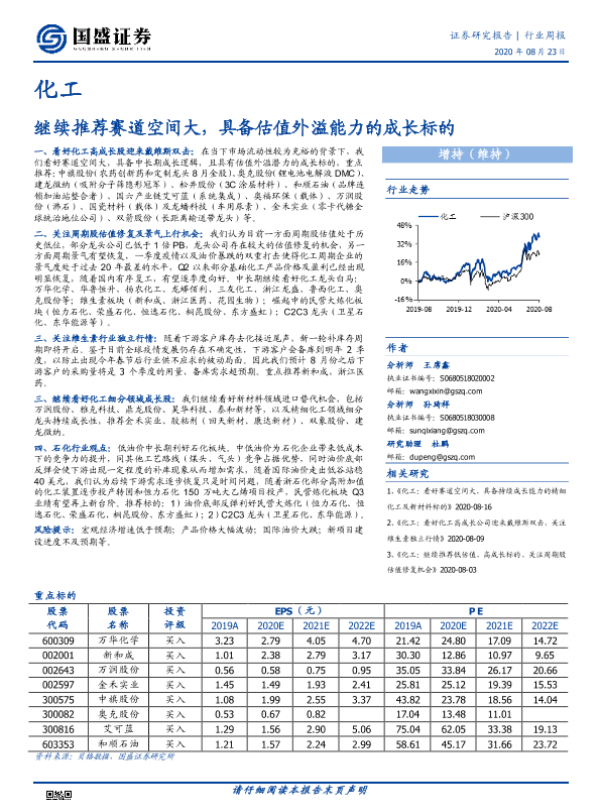 【国盛证券】【20200823】20200823-国盛证券-化工行业周报:继续推荐赛道空间大,具备估值外溢能力的成长标的-10页