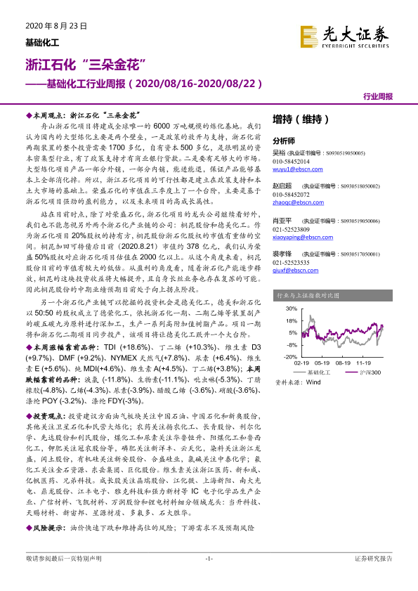 【光大证券】【20200823】基础化工行业周报:浙江石化“三朵金花”-24页