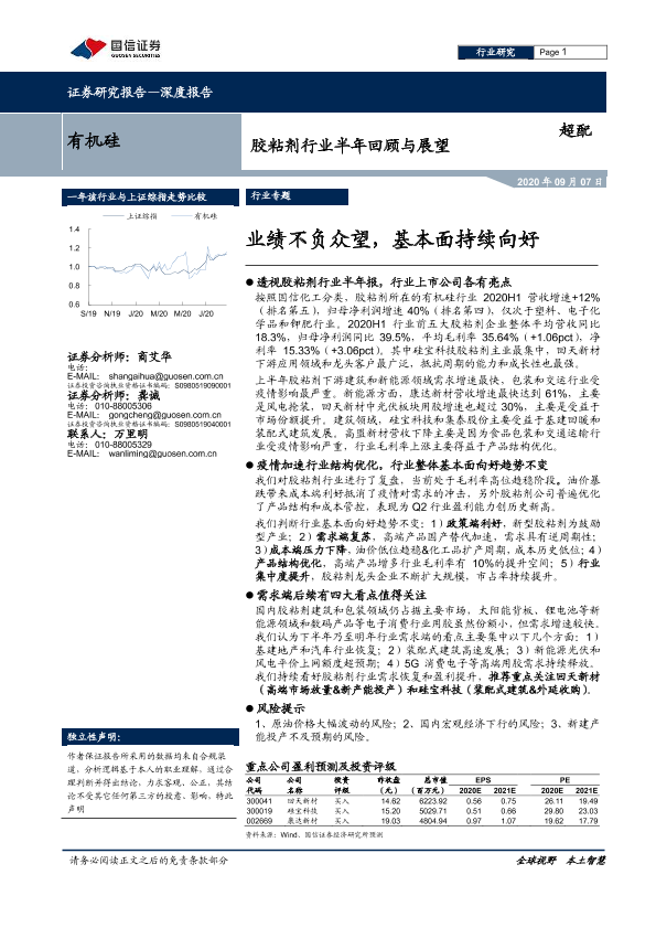 【国信证券】【20200907】胶粘剂行业半年回顾与展望:业绩不负众望,基本面持续向好-21页