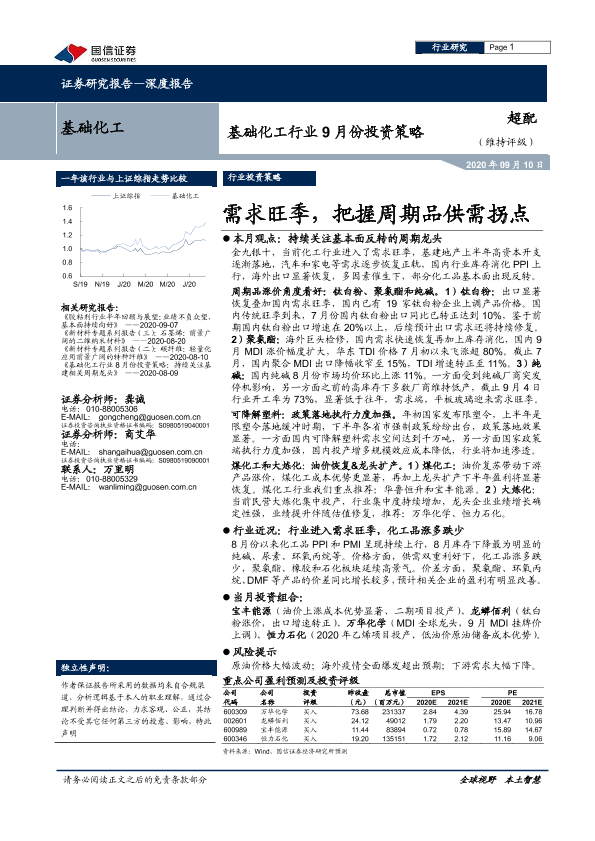 【国信证券】【20200910】基础化工行业9月份投资策略:需求旺季,把握周期品供需拐点-33页
