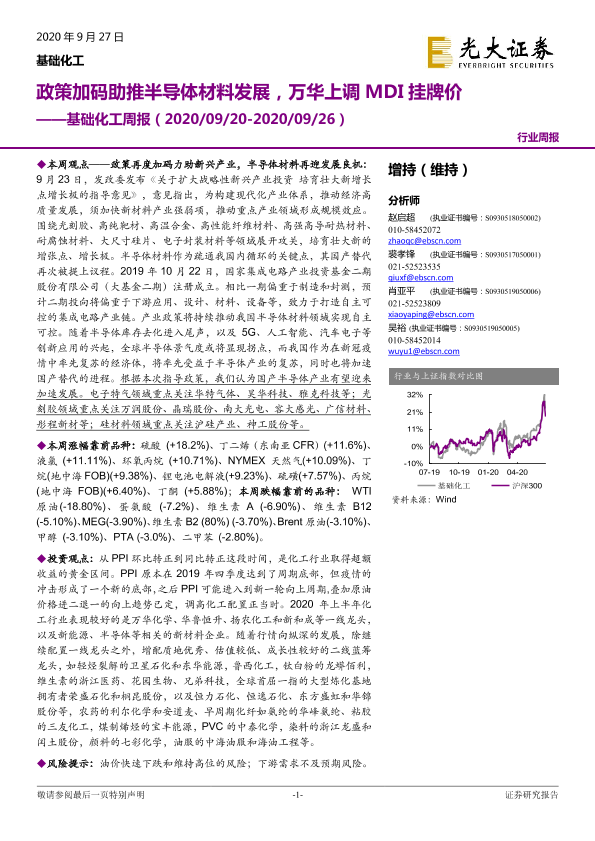 【光大证券】【20200927】基础化工周报:政策加码助推半导体材料发展,万华上调MDI挂牌价-24页