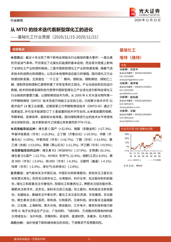 【光大证券】【20201123】基础化工行业周报:从MTO的技术迭代看新型煤化工的进化-24页