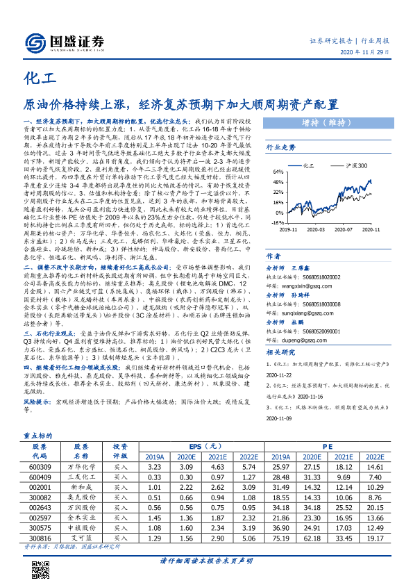 【国盛证券】【20201129】20201129-国盛证券-化工行业周报:原油价格持续上涨,经济复苏预期下加大顺周期资产配置-11页