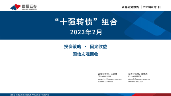 【国信证券】【20230201】2023年2月“十强转债”组合-30页