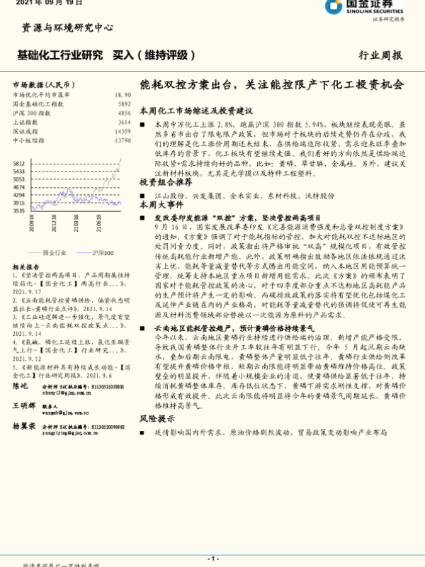 【国金证券】【20210919】20210919-国金证券-基础化工行业研究周报:能耗双控方案出台,关注能控限产下化工投资机会-29页