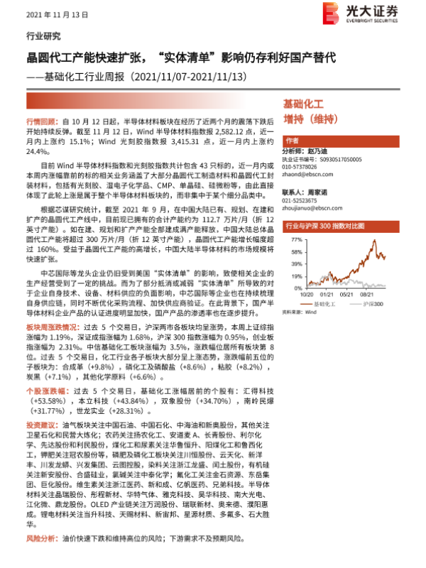 【光大证券】【20211113】基础化工行业周报:晶圆代工产能快速扩张,“实体清单”影响仍存利好国产替代-23页