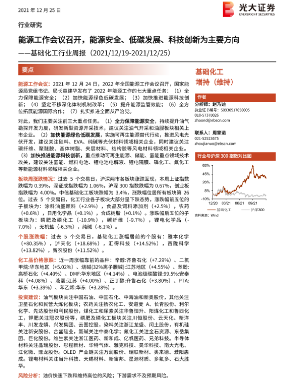 【光大证券】【20211225】基础化工行业周报:能源工作会议召开,能源安全、低碳发展、科技创新为主要方向-23页
