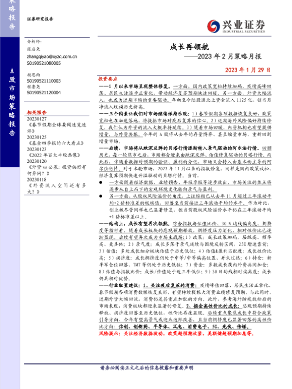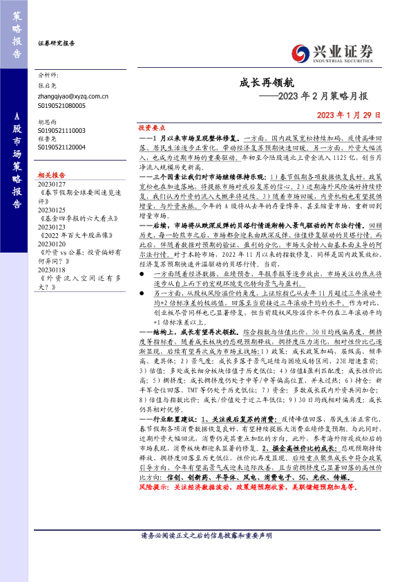 【兴业证券】【20230129】2023年2月策略月报:成长再领航-21页
