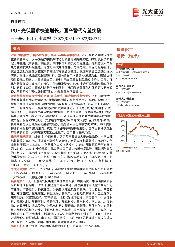 【光大证券】【20220821】基础化工行业周报:POE光伏需求快速增长,国产替代有望突破-27页