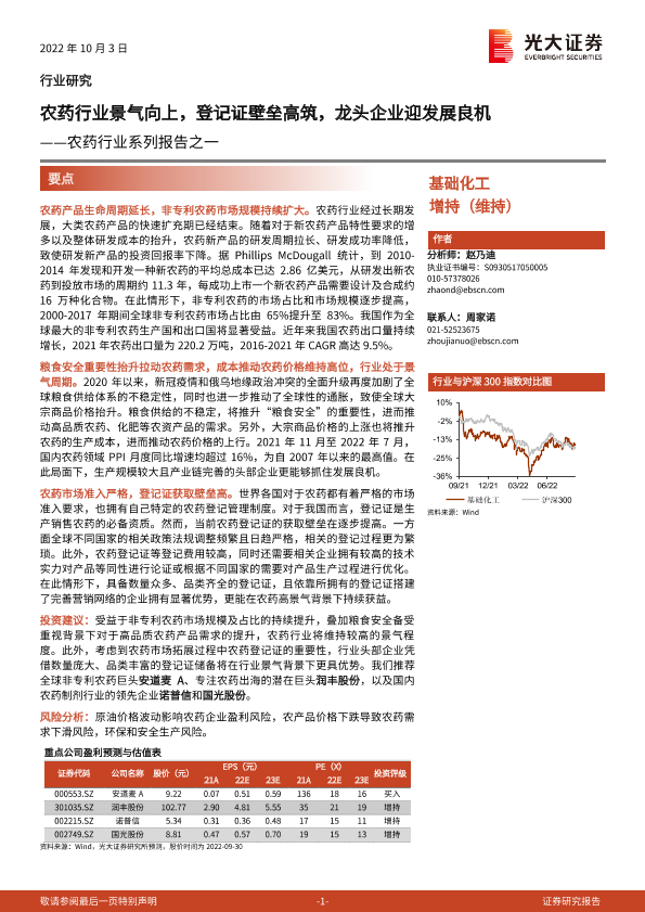 【光大证券】【20221003】20221003-光大证券-农药行业系列报告之一:农药行业景气向上,登记证壁垒高筑,龙头企业迎发展良机-43页