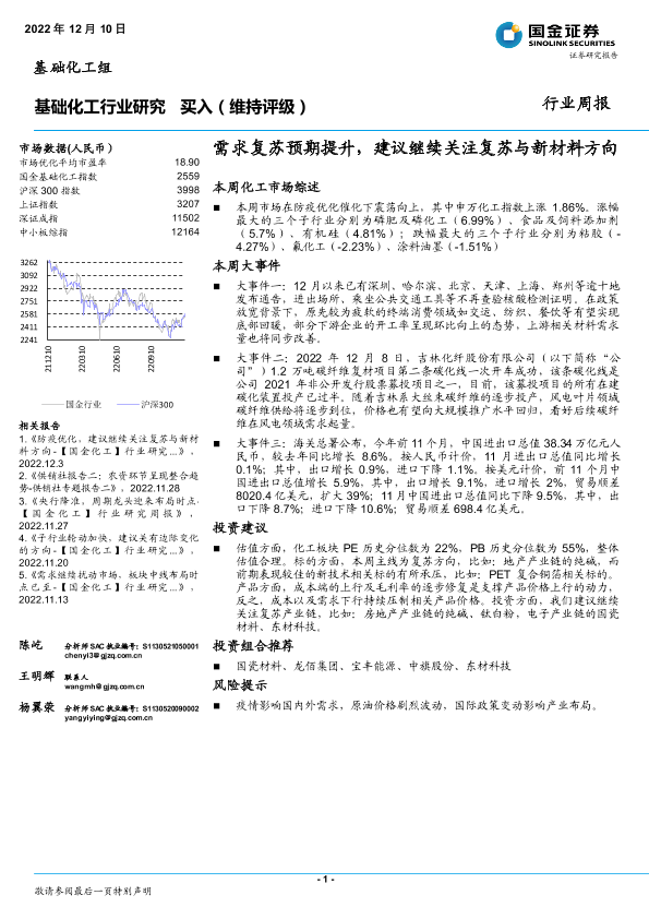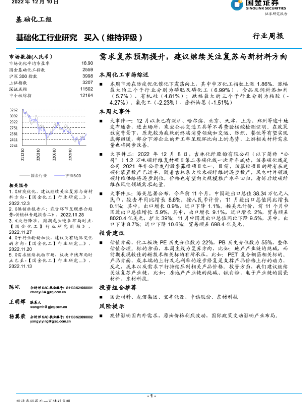 【国金证券】【20221210】20221210-国金证券-基础化工行业研究:需求复苏预期提升,建议继续关注复苏与新材料方向-26页