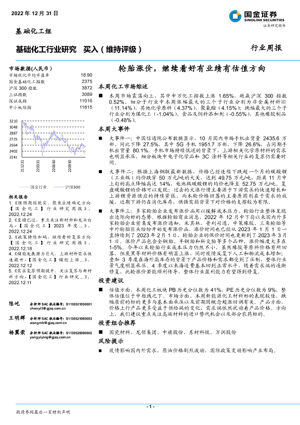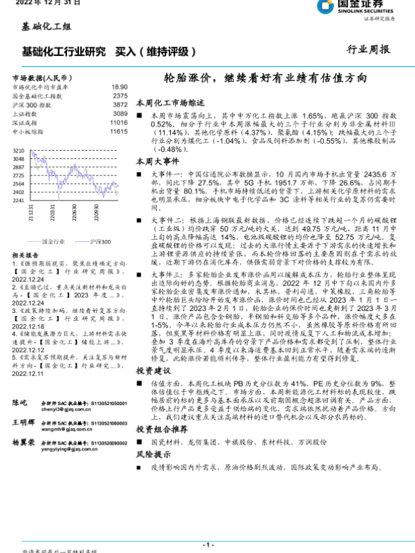 【国金证券】【20221231】基础化工行业研究:轮胎涨价,继续看好有业绩有估值方向-27页