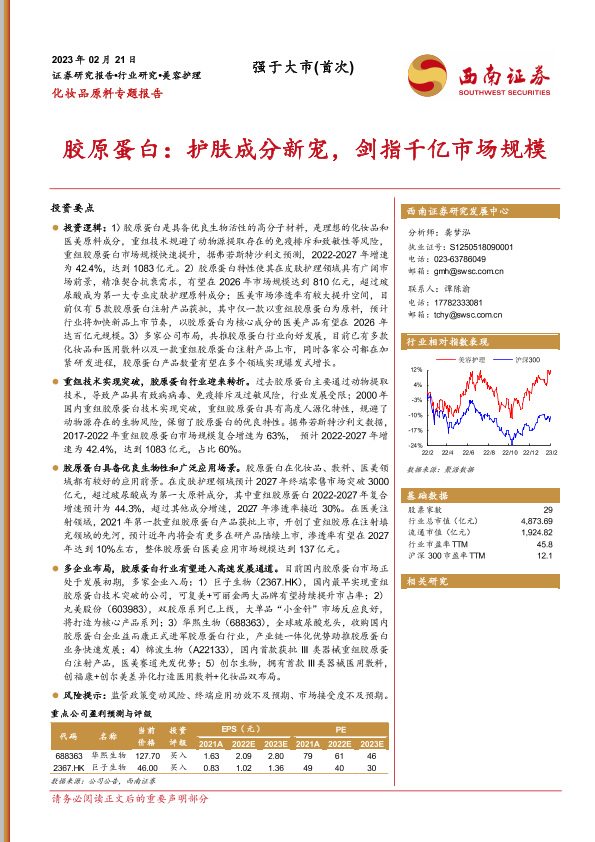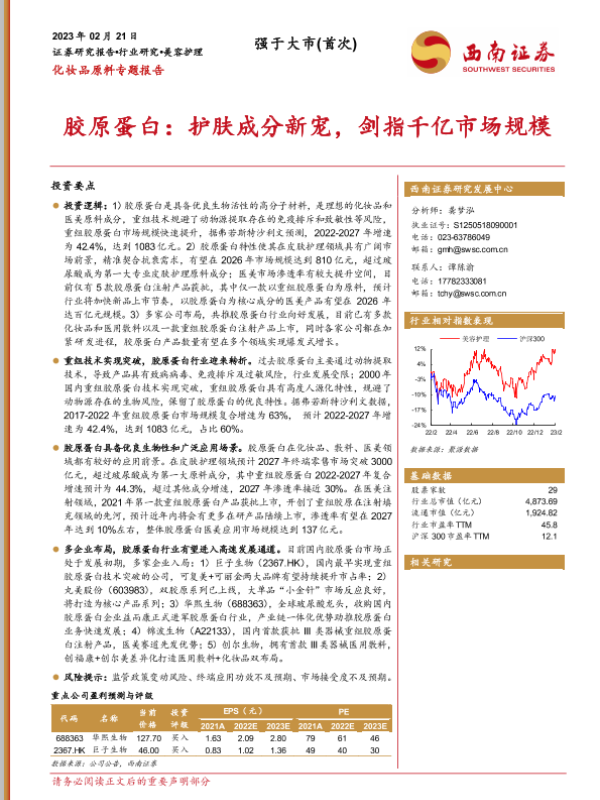 【西南证券】【20230221】化妆品原料专题报告:胶原蛋白:护肤成分新宠,剑指千亿市场规模-26页