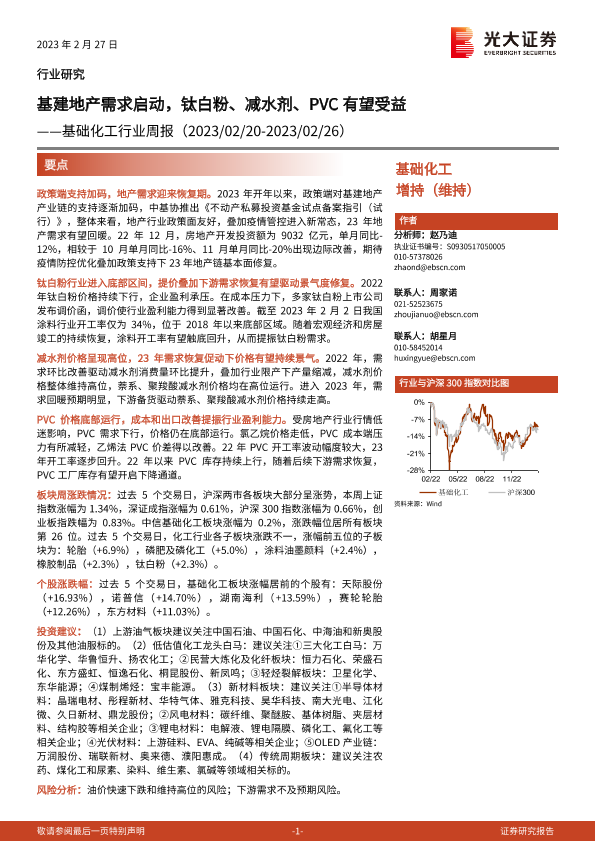 【光大证券】【20230227】基础化工行业周报:基建地产需求启动,钛白粉、减水剂、PVC有望受益-28页