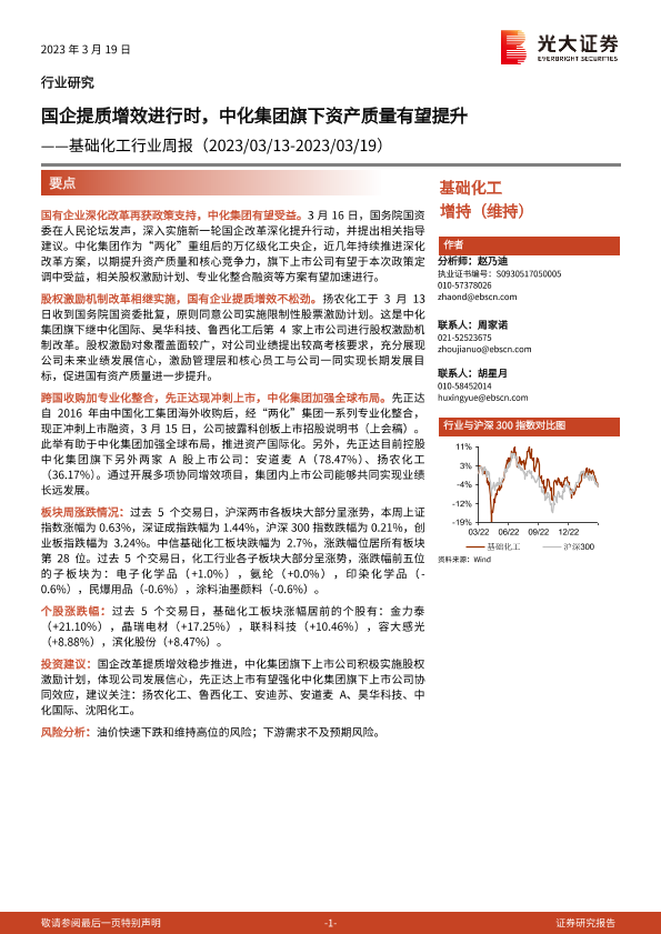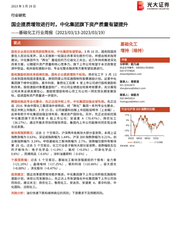 【光大证券】【20230319】基础化工行业周报:国企提质增效进行时,中化集团旗下资产质量有望提升-27页