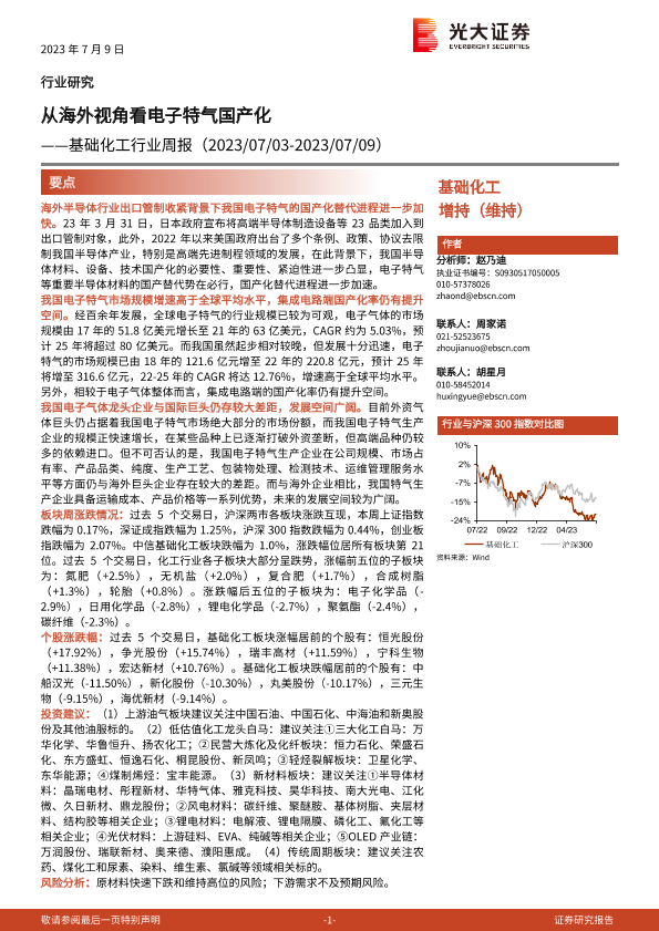 【光大证券】【20230709】基础化工行业周报:从海外视角看电子特气国产化-32页