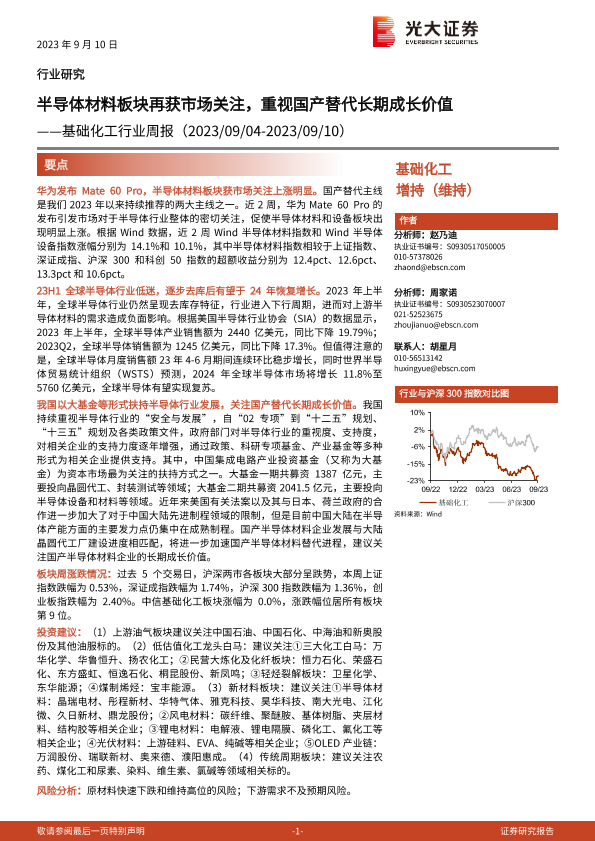 【光大证券】【20230910】基础化工行业周报:半导体材料板块再获市场关注,重视国产替代长期成长价值-28页