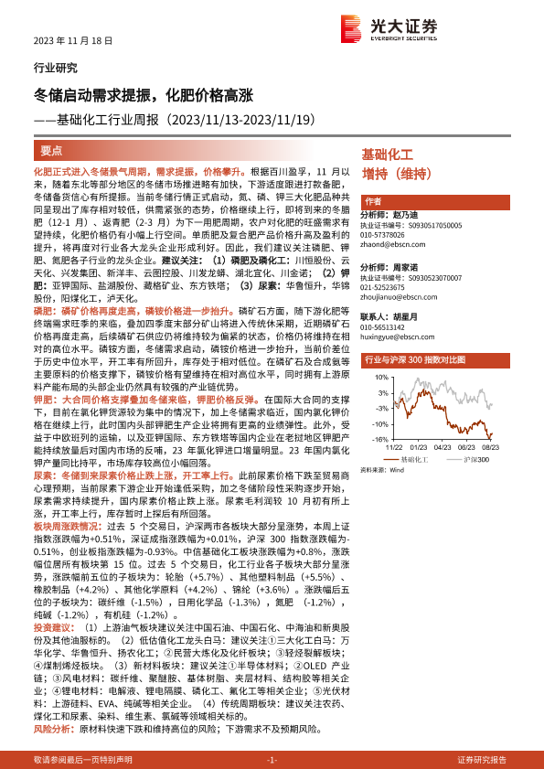 【光大证券】【20231118】基础化工行业周报:冬储启动需求提振,化肥价格高涨-26页