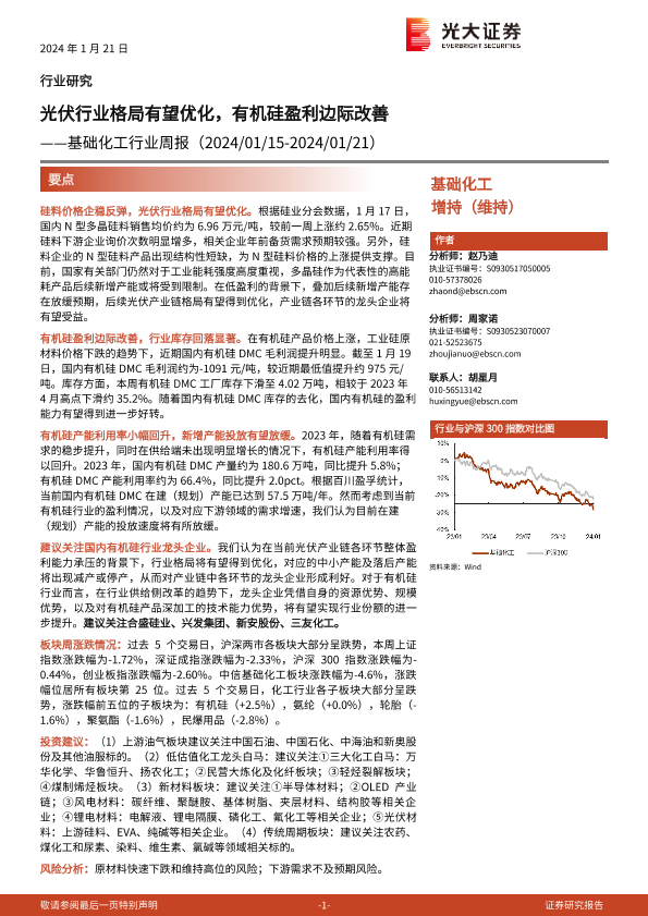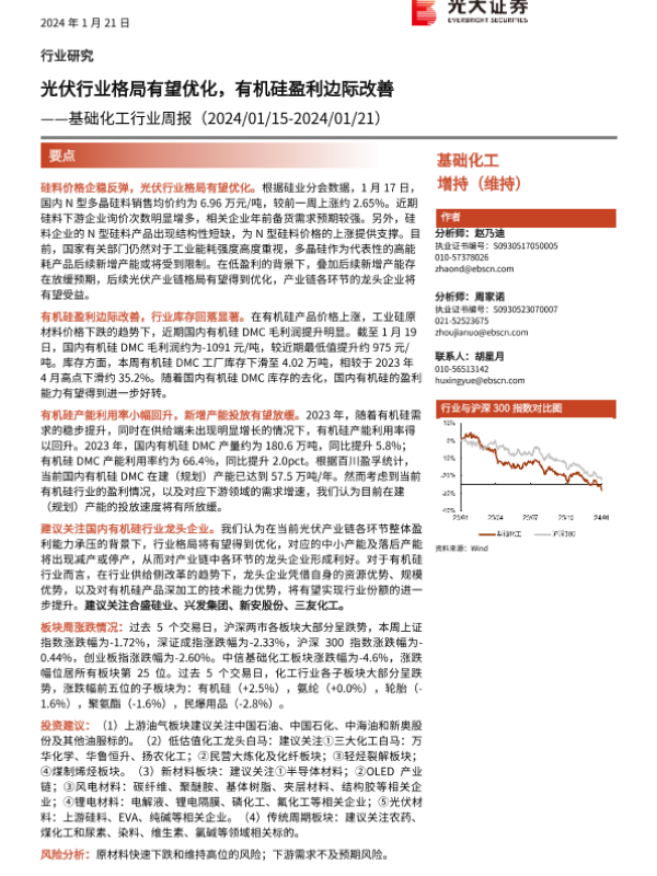 【光大证券】【20240121】基础化工行业周报:光伏行业格局有望优化,有机硅盈利边际改善-24页