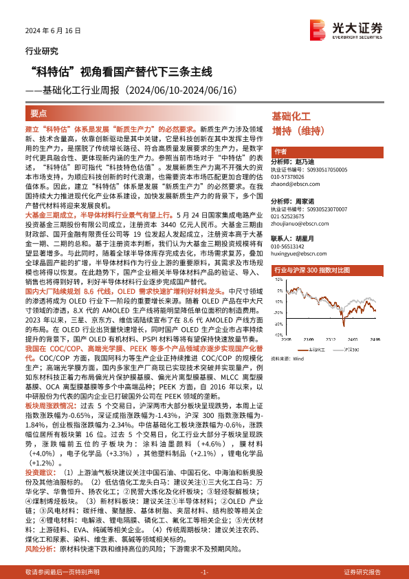【光大证券】【20240616】基础化工行业周报:“科特估”视角看国产替代下三条主线-33页