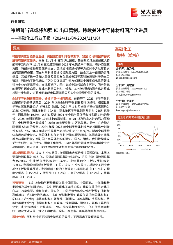 【光大证券】【20241112】基础化工行业周报:特朗普当选或将加强IC出口管制,持续关注半导体材料国产化进展-21页