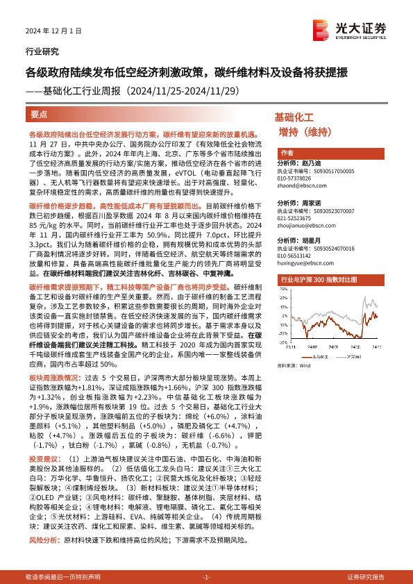 【光大证券】【20241201】基础化工行业周报:各级政府陆续发布低空经济刺激政策,碳纤维材料及设备将获提振-24页