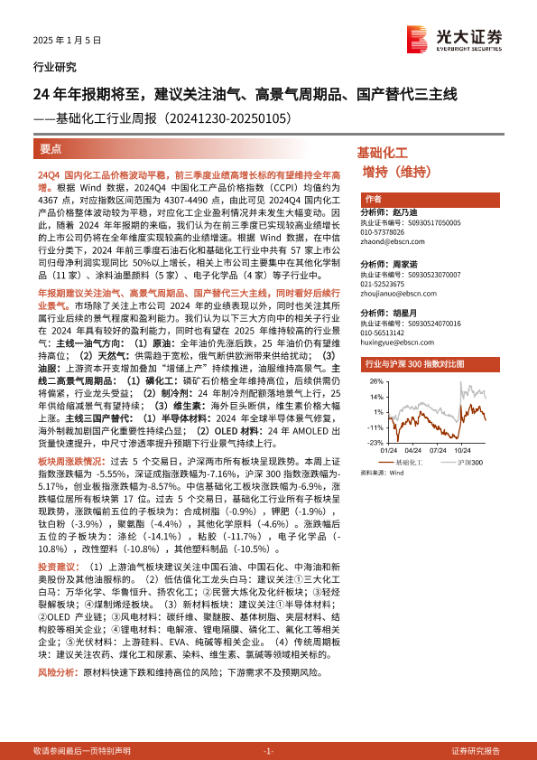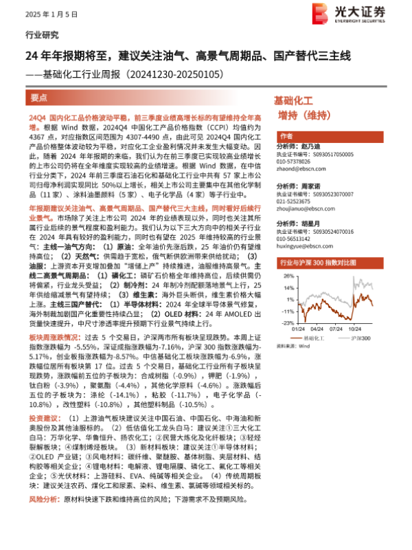 【光大证券】【20250105】基础化工行业周报:24年年报期将至,建议关注油气、高景气周期品、国产替代三主线-27页