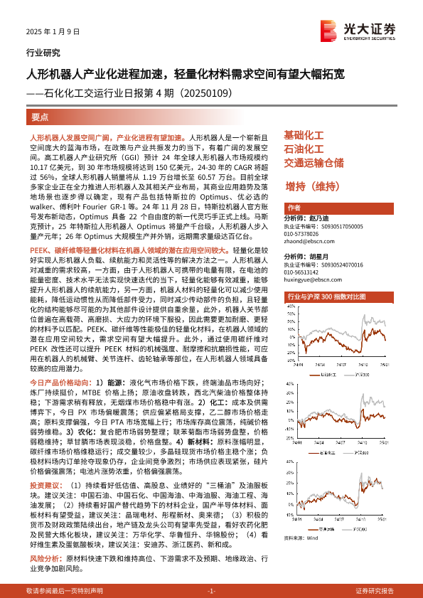 【光大证券】【20250109】石化化工交运行业日报第4期:人形机器人产业化进程加速,轻量化材料需求空间有望大幅拓宽-11页