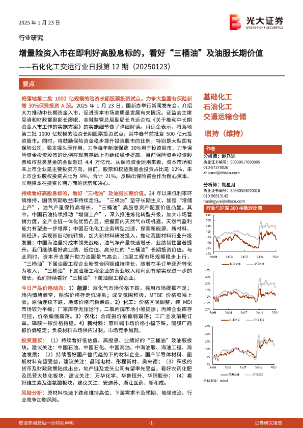 【光大证券】【20250123】石化化工交运行业日报第12期:增量险资入市在即利好高股息标的,看好“三桶油”及油服长期价值-11页