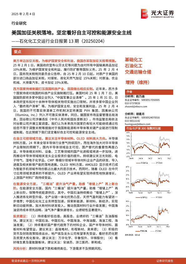 【光大证券】【20250204】石化化工交运行业日报第13期:美国加征关税落地,坚定看好自主可控和能源安全主线-11页