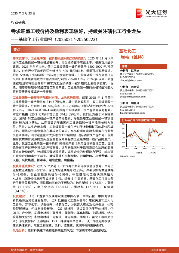 【光大证券】【20250223】基础化工行业周报:需求旺盛工铵价格及盈利表现较好,持续关注磷化工行业龙头-25页
