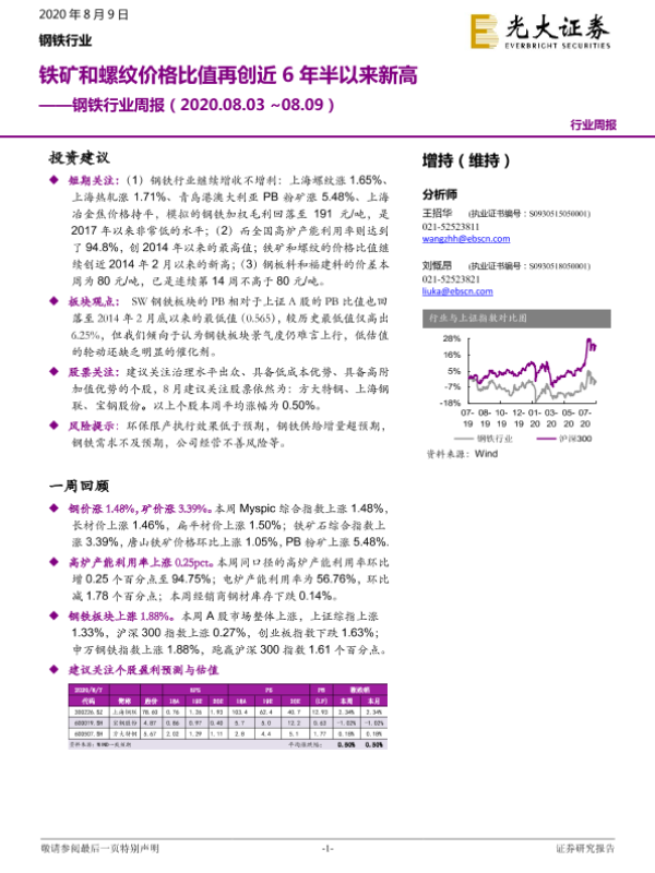 【光大证券】【20200809】钢铁行业周报:铁矿和螺纹价格比值再创近6年半以来新高-8页