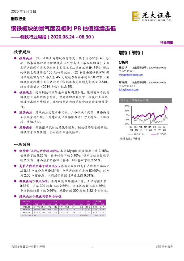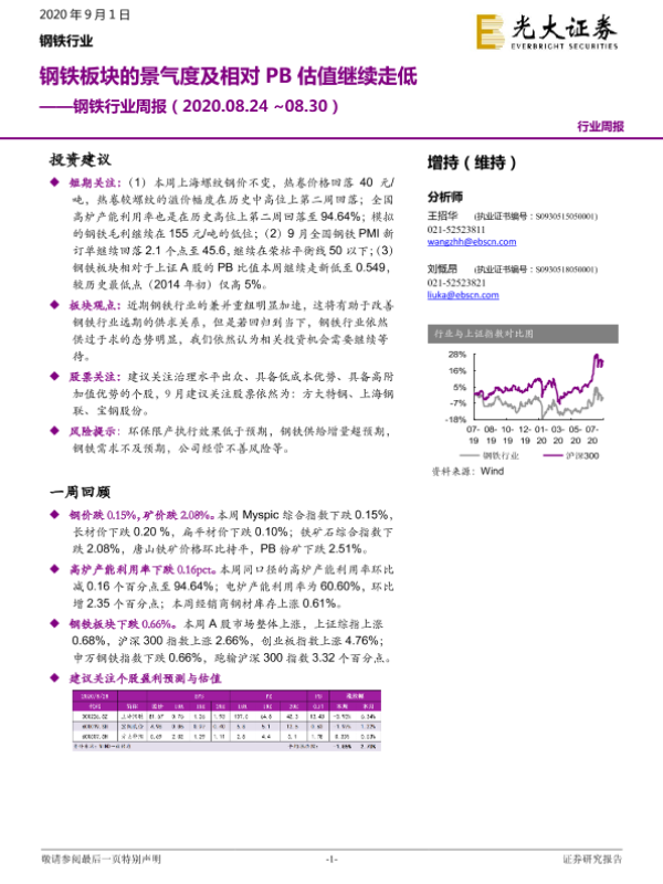 【光大证券】【20200901】20200830-光大证券-钢铁行业周报:钢铁板块的景气度及相对PB估值继续走低-8页