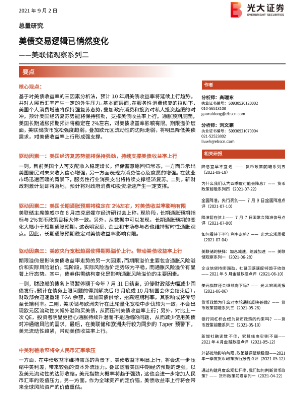 【光大证券】【20210902】美债交易逻辑已悄然变化-17页