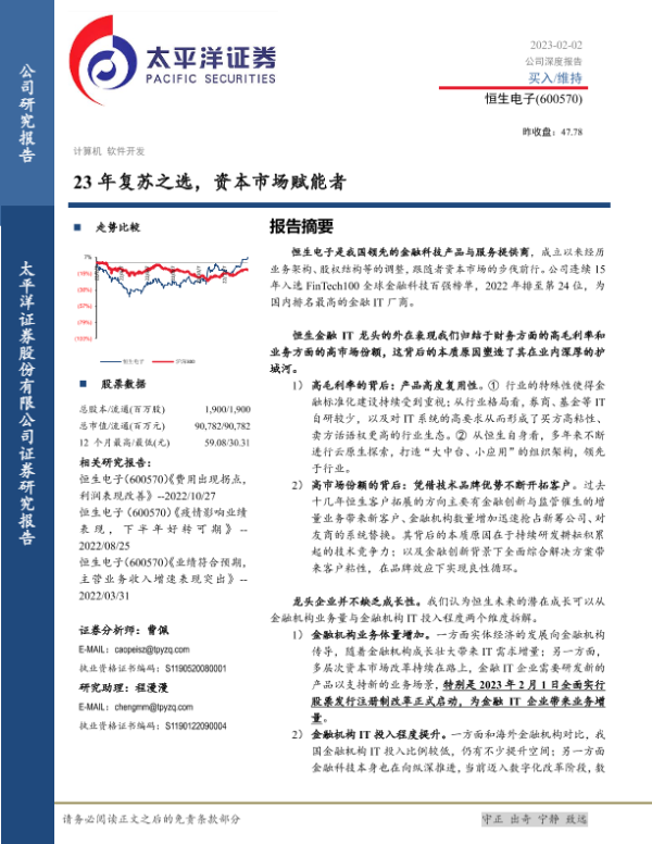 IT服务 业务分析 投资建议 资本市场 金融科技