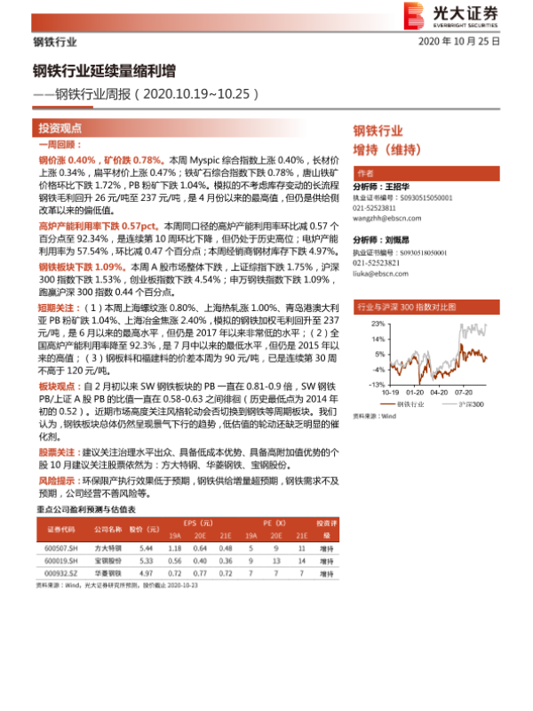 【光大证券】【20201025】钢铁行业周报:钢铁行业延续量缩利增-8页