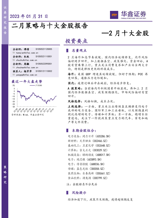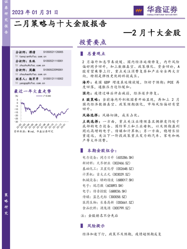 【华鑫证券】【20230131】2月十大金股:二月策略与十大金股报告-16页