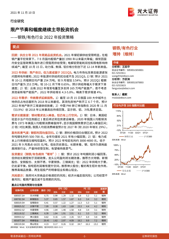 【光大证券】【20211110】钢铁 有色行业2022年投资策略:限产节奏和幅度继续主导投资机会-48页