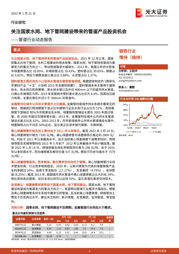 【光大证券】【20220121】20220121-光大证券-管道行业动态报告:关注国家水网、地下管网建设带来的管道产品投资机会-13页