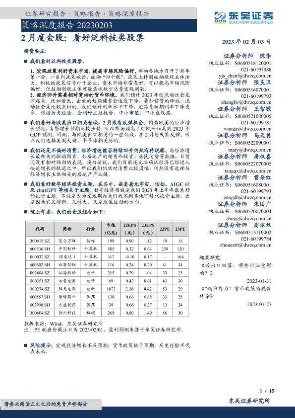 【东吴证券】【20230203】2月度金股:看好泛科技类股票-15页