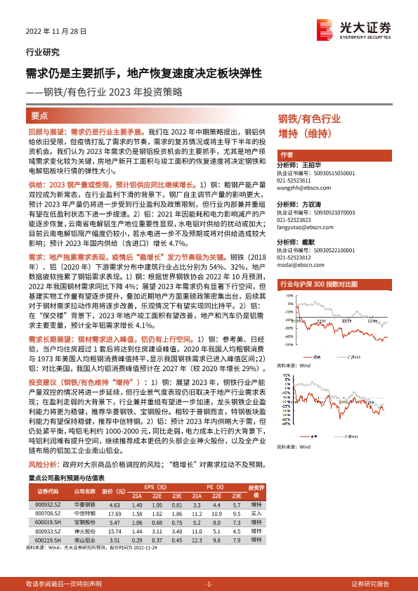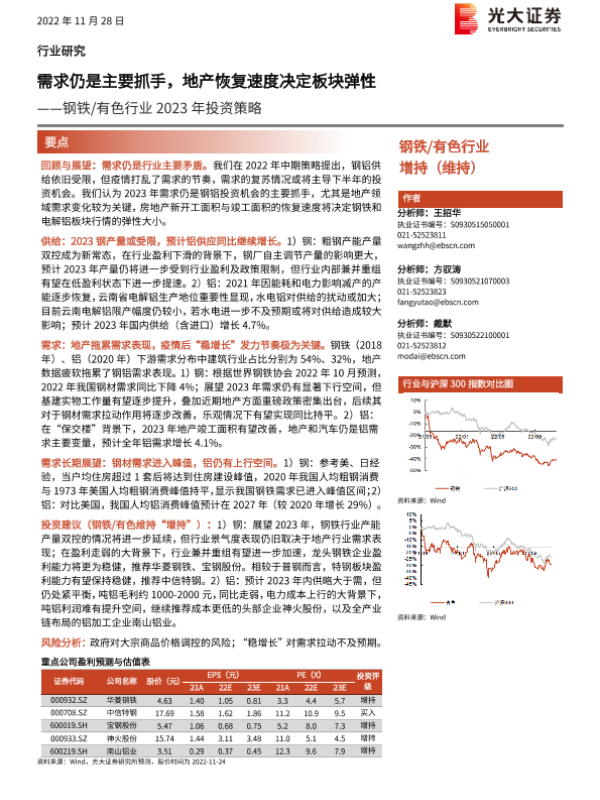 【光大证券】【20221128】钢铁 有色行业2023年投资策略:需求仍是主要抓手,地产恢复速度决定板块弹性-40页