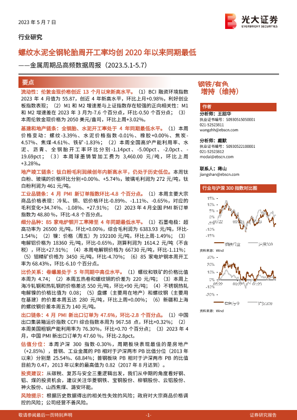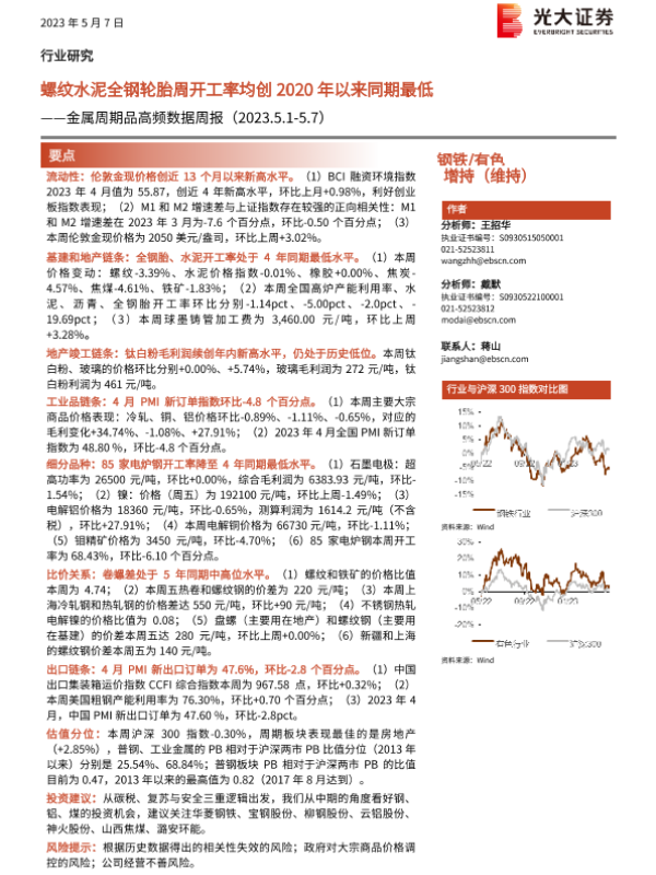 【光大证券】【20230507】钢铁:金属周期品高频数据周报-螺纹水泥全钢轮胎周开工率均创2020年以来同期最低-26页