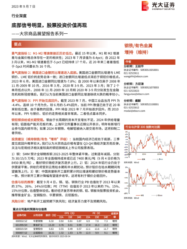 【光大证券】【20230907】20230907-光大证券-钢铁 有色金属:大宗商品展望报告系列一:底部信号明显,股票投资价值再现-22页