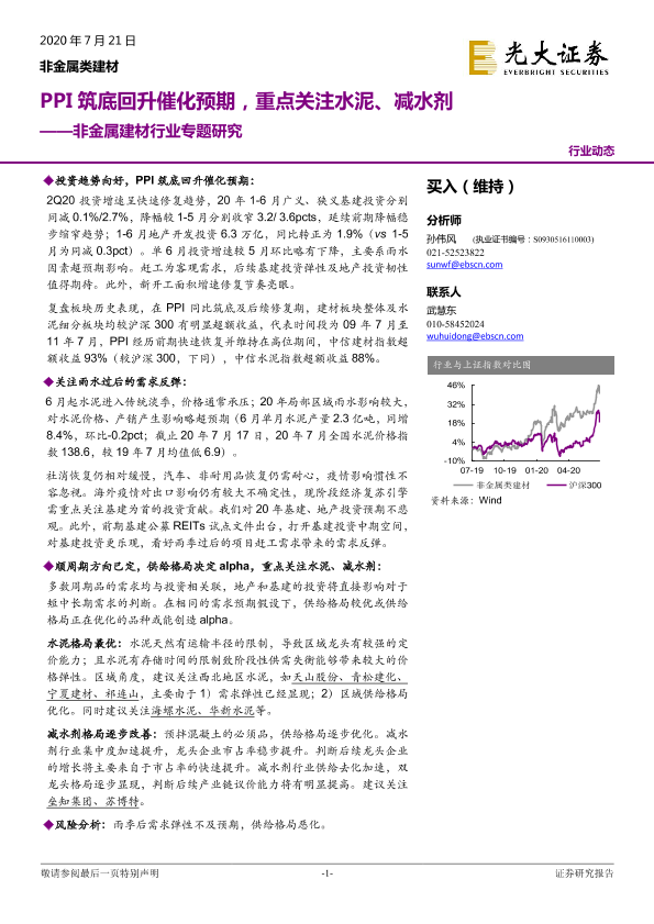 【光大证券】【20200721】非金属建材行业专题研究:PPI筑底回升催化预期,重点关注水泥、减水剂-9页
